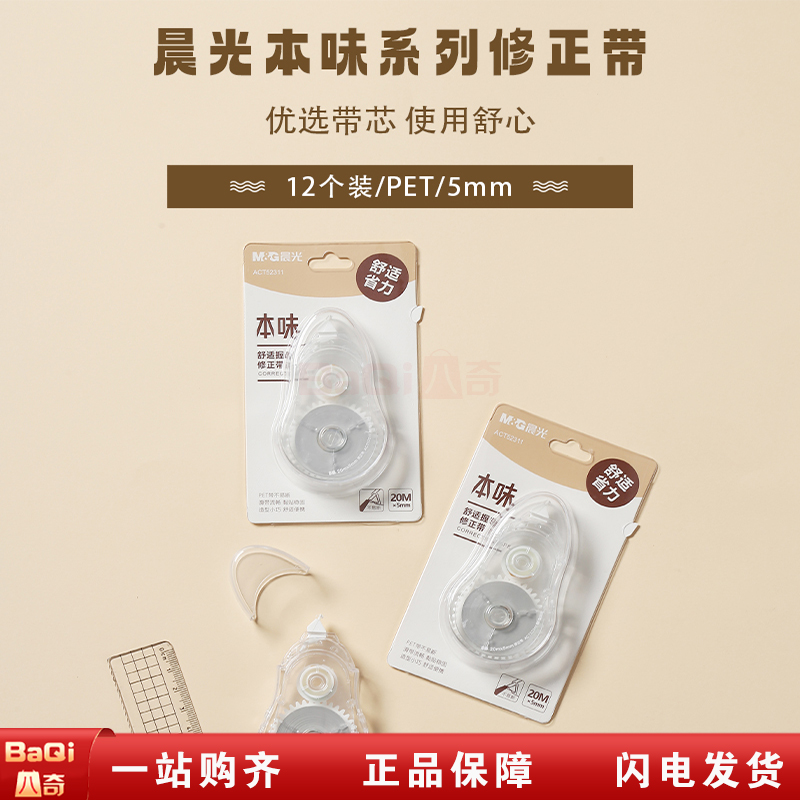 商品名称:晨光ACT522311 本味系列透明简约修正带20m修正带PET塑料芯不断带 (12卡/盒)