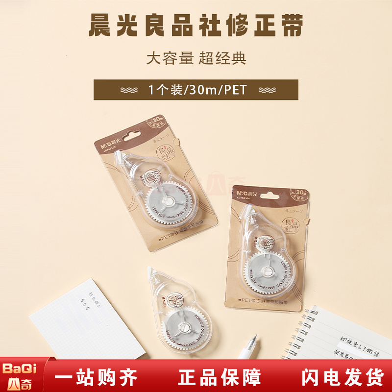 商品名称:晨光ACT58304 良品社系列修正带白色30m顺滑透明壳PET涂改带 (12卡/盒)