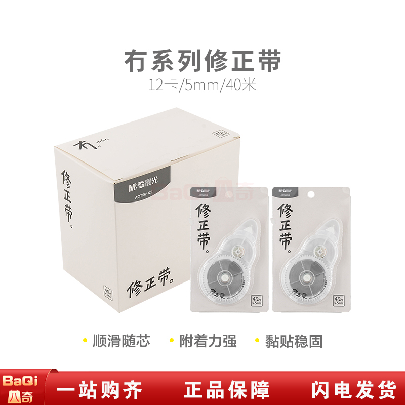 商品名称:晨光ACT561X2 冇系列无印风大容量修正带40米学生用涂改带宽5mm白 (12卡/盒)