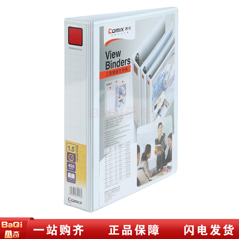 商品名称:齐心 A0216 A4 2寸3孔 美式三面插袋D型档案夹 白