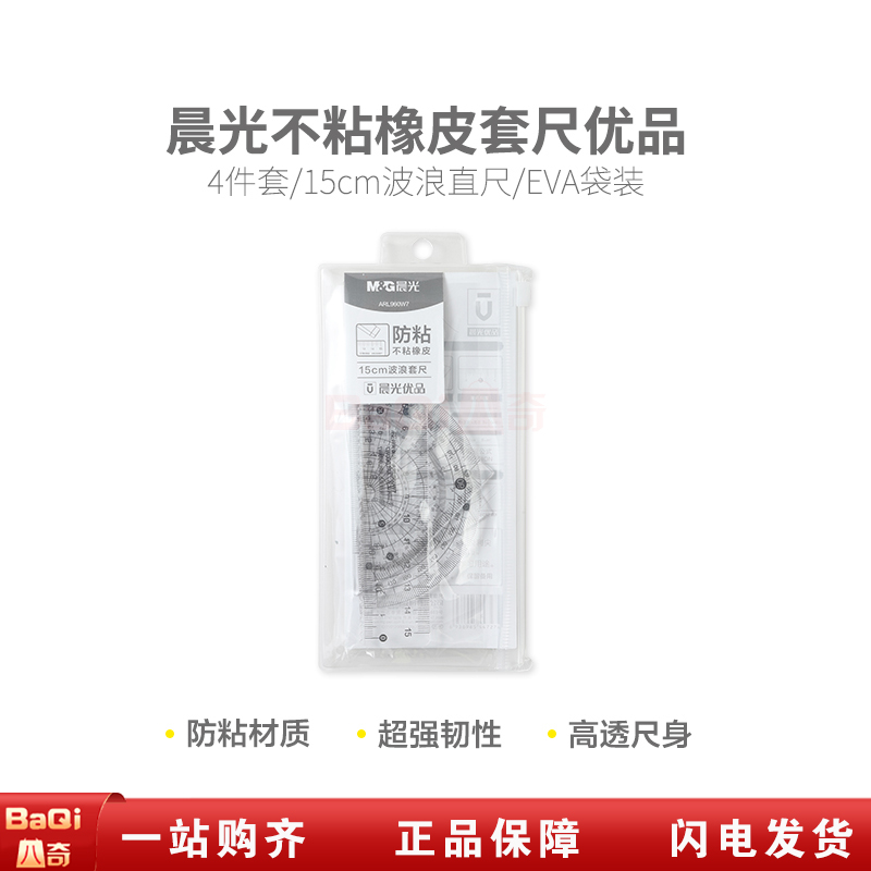 晨光ARL960W7 优品防粘橡皮学生考试绘画套尺(4把/套)