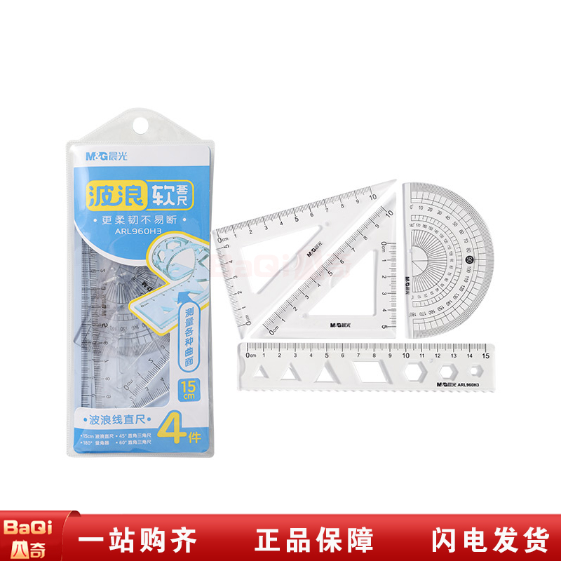 商品名称:晨光ARL960H3 波浪软套尺软尺直尺三角尺半圆仪尺绘图尺 三角板套尺15cm(4把/套)