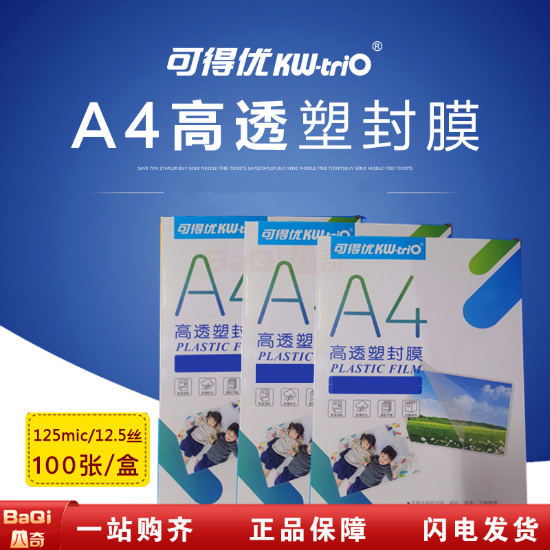 商品名称:可得优 12.5c过塑膜A4塑膜菜单文件护卡膜塑封机过胶纸热塑袋相片封膜纸透明标本树叶保护膜塑封膜(100张/盒)