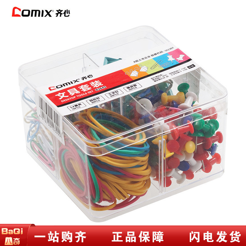 齐心 B3645 文具套装 5号票夹/29mm回形针/橡皮筋/工字钉