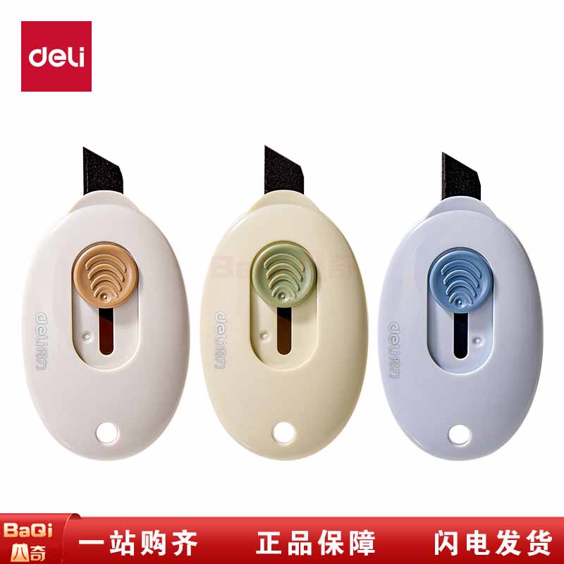商品名称:得力2050S迷你美工刀开箱刀黑刃防锈美工刀片裁纸刀片拆快递小刀特氟龙不粘胶混色随机