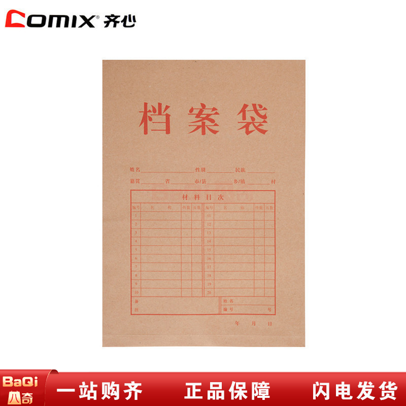 商品名称:齐心 AP-123 A4 本色国产档案袋 竖式(50个/套) 牛皮纸