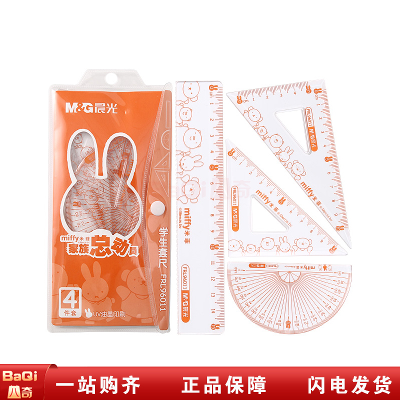 商品名称:晨光FRL96011 米菲系列尺子套装4件套学生考试三角板直角尺量角器套装 黑色/绿色/橙色/蓝色(4把/套)