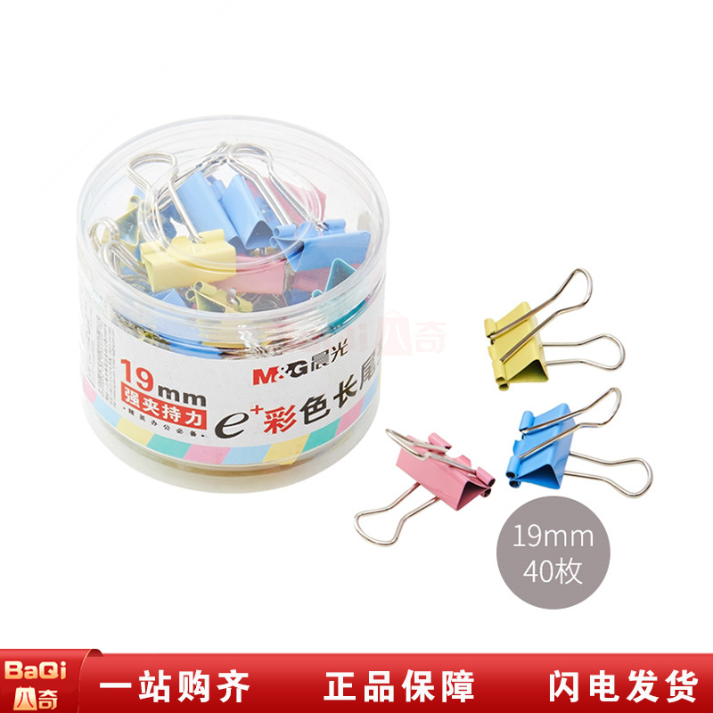 商品名称:晨光ABS92742 彩色长尾夹 19mm金属票据夹办公燕尾夹(40个/筒)