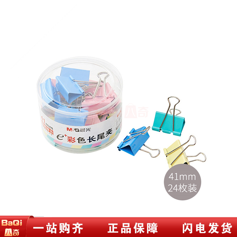 商品名称:晨光ABS92739 彩色长尾夹 41mm 大号金属票据夹 Eplus系列办公燕尾夹(24枚/筒)
