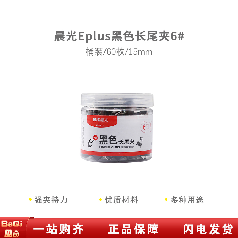 商品名称:晨光ABS92737 文具15mm黑色长尾夹金属票据夹 Eplus系列办公燕尾夹(60枚/盒)