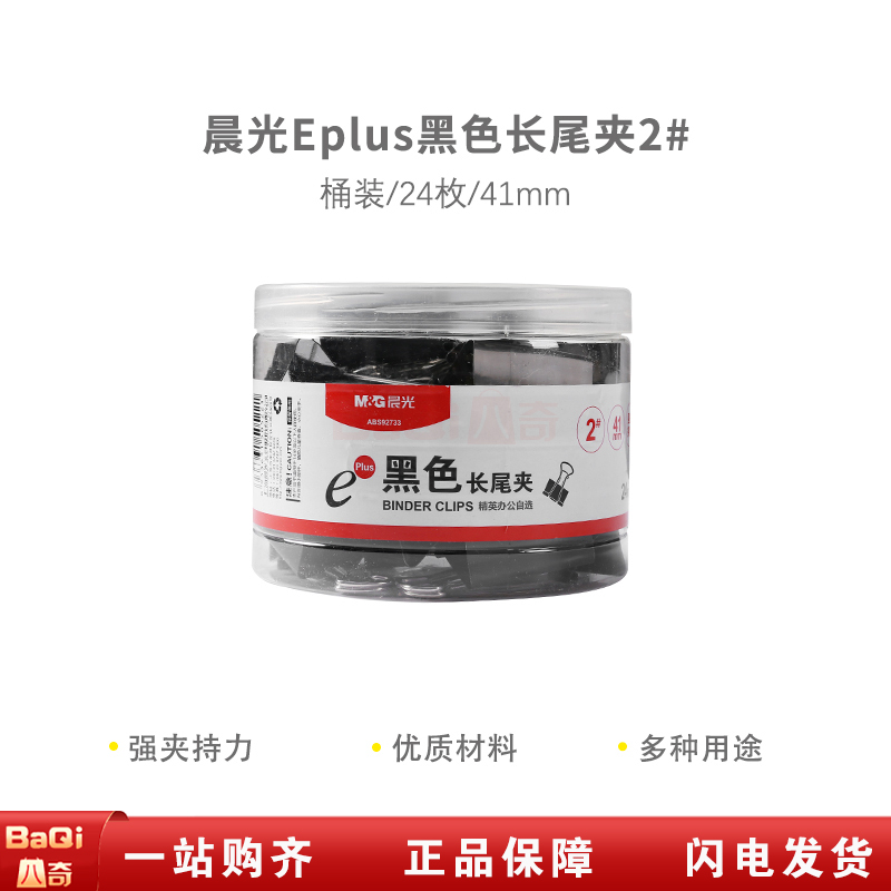 商品名称:晨光ABS92733 黑色长尾夹 41mm 大号金属票据夹 办公燕尾夹(24枚/筒)