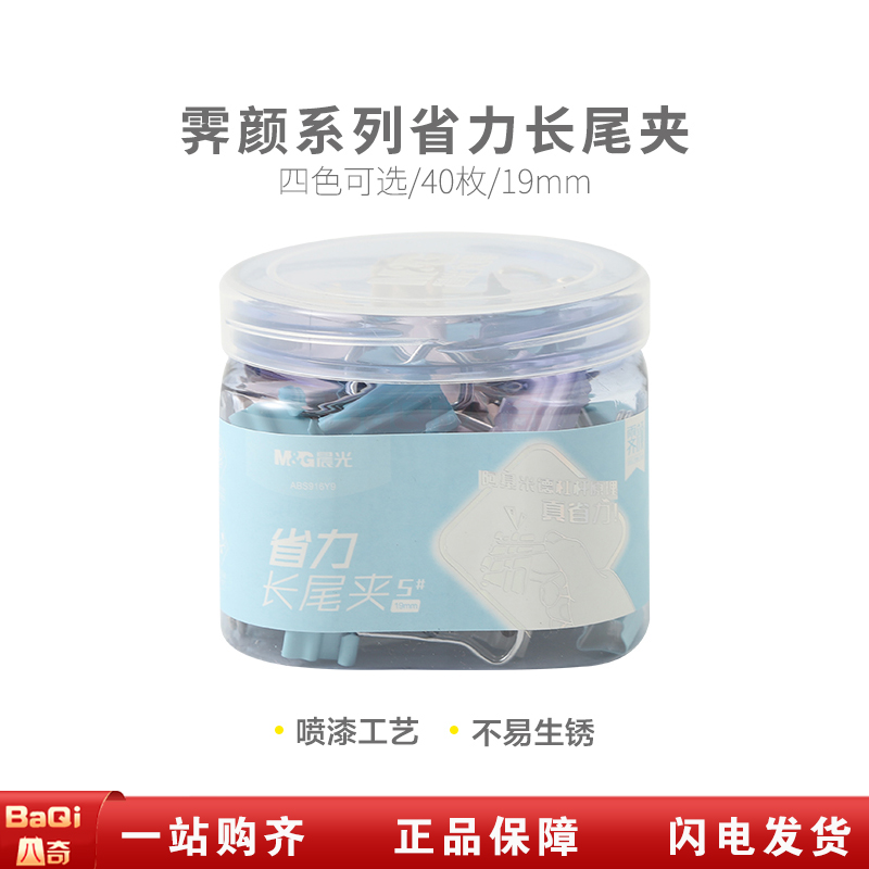 商品名称:晨光ABS916Y9 霁颜系列长尾夹票夹省力夹子19mm(40枚/盒)