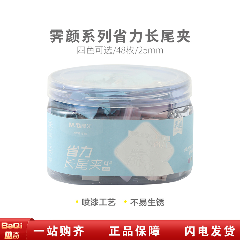 商品名称:晨光ABS916Y8 霁颜系列长尾夹票夹省力夹子25mm(48枚/盒)