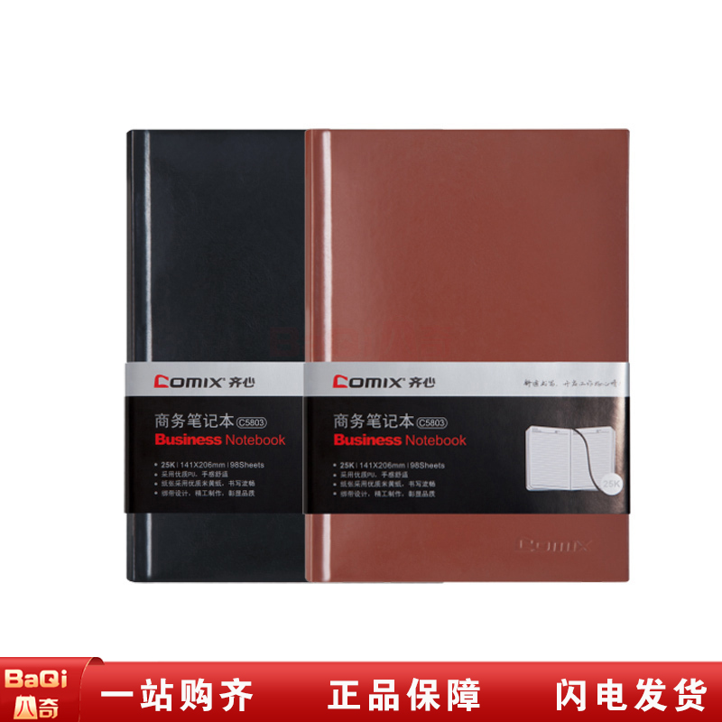 齐心 C5803 25K 146张 皮面笔记本 黑/棕