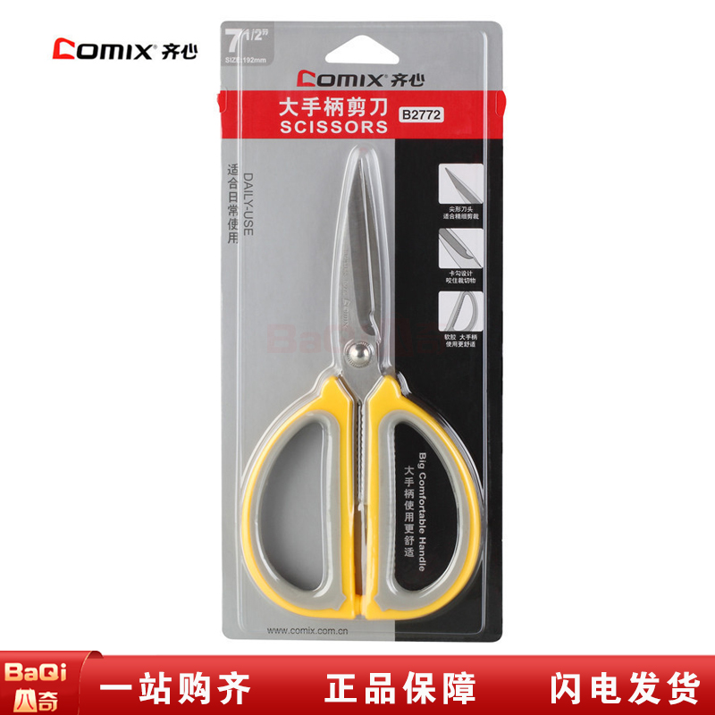 齐心 B2772 192mm 大号舒适大手柄剪刀 黄
