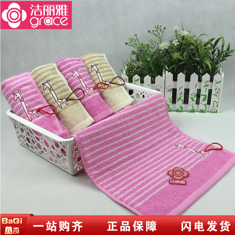 洁丽雅 9110 纯棉长颈鹿条纹带挂绳毛巾强吸水儿童洗脸面巾童巾50*25cm
