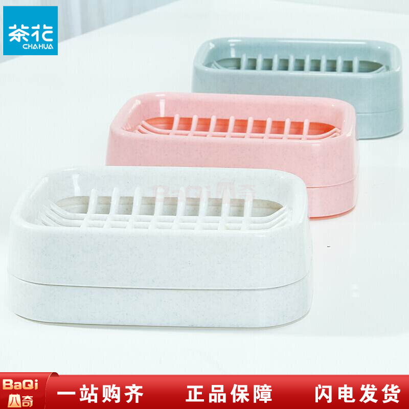 茶花 2213卫生皂盘 香皂盒肥皂盒子双层沥水网格卫生皂盘13*9.4*4cm颜色随机