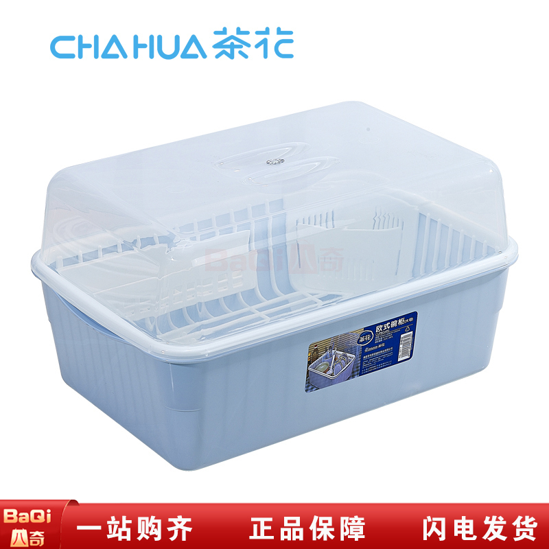茶花 厨房置物架1817大号欧式碗柜 塑料碗碟架 沥水架 有盖子密封碗柜47.5*32*25.5cm颜色随机