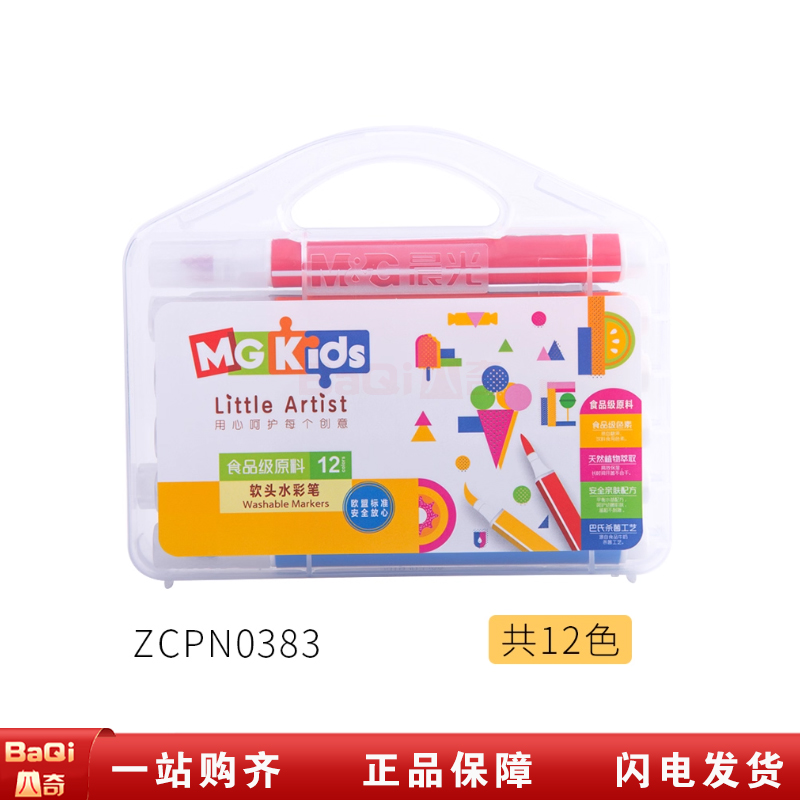 商品名称:晨光ZCPN0383 软头水彩笔食品级可水洗幼儿园儿童小学生绘画专用涂鸦笔大容量彩色笔套装(12色/盒)