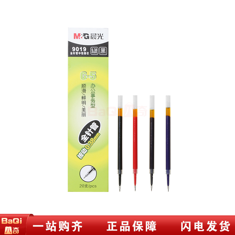 商品名称:晨光9019G-5 全针管0.38mm按动替芯 黑色/蓝色/红色 (20支/盒)