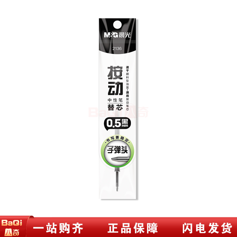 商品名称:晨光2136 好选速干黑色0.5mm按动子弹头替芯(20支/盒)