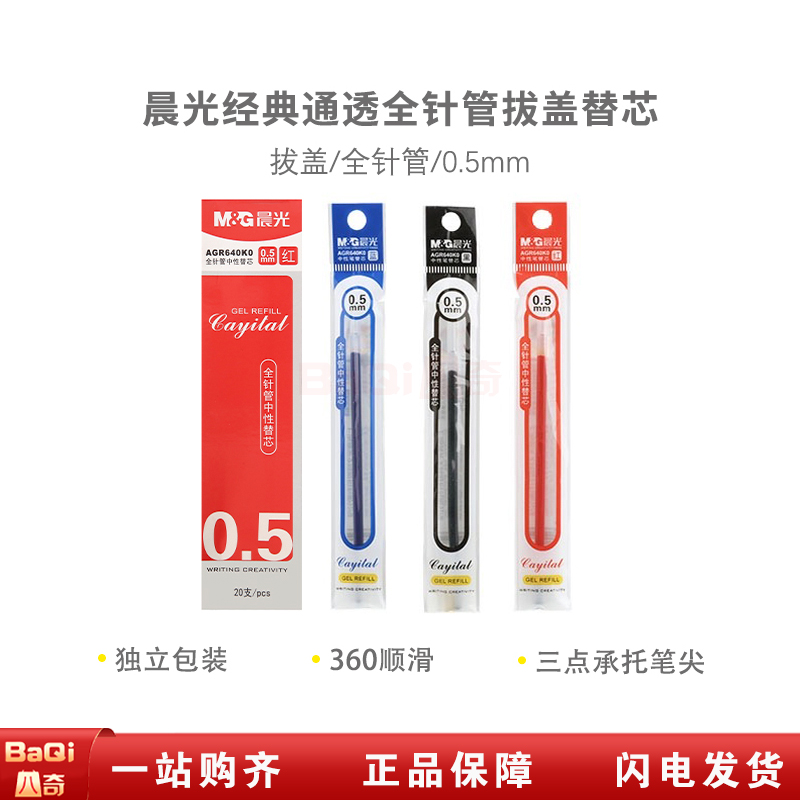 商品名称:晨光AGR640K0 经典0.5mm拔盖全针管中性笔替芯 黑色/红色/蓝色(20支/盒)