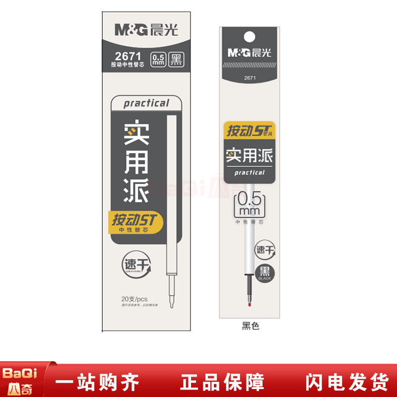 晨光2671 实用派速干ST学生替芯中性替芯按动替芯 黑色 0.5mm(20支/盒)