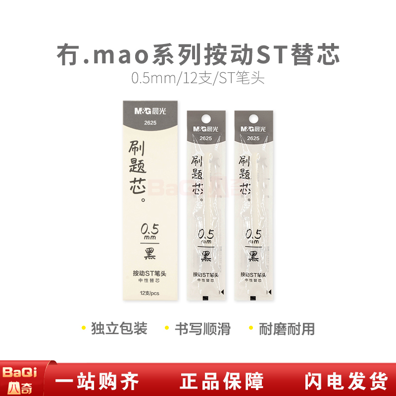 晨光2625 冇.mao系列ST按动秒干替芯0.5mm 黑色(12支/盒)