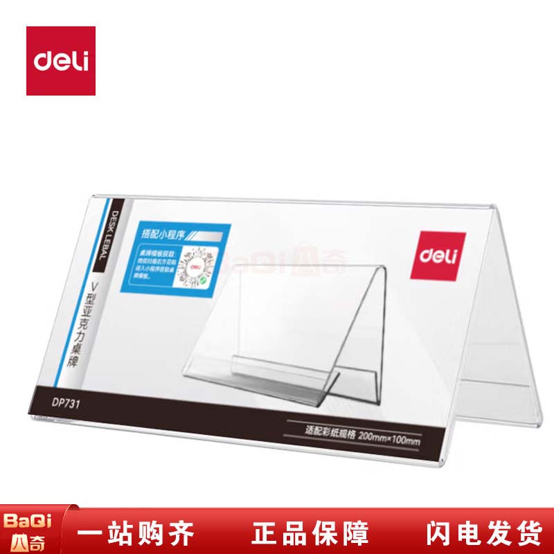 商品名称:得力 DP731 200*100mmV型亚克力桌牌三角立牌展示牌 透明
