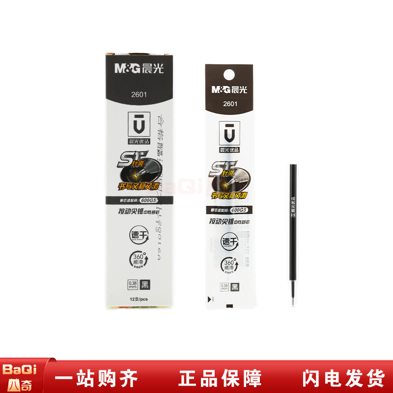 商品名称:晨光2601 优品系列黑色速干中性笔替芯考试用针管头水笔芯 0.38mm (12支/盒)