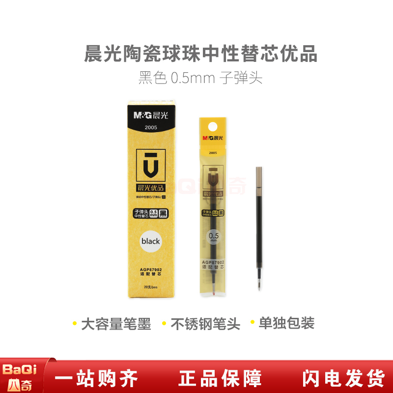 商品名称:晨光AGR67T65 优品系列精品替芯中性笔替芯黑色0.5mm(20支/盒)