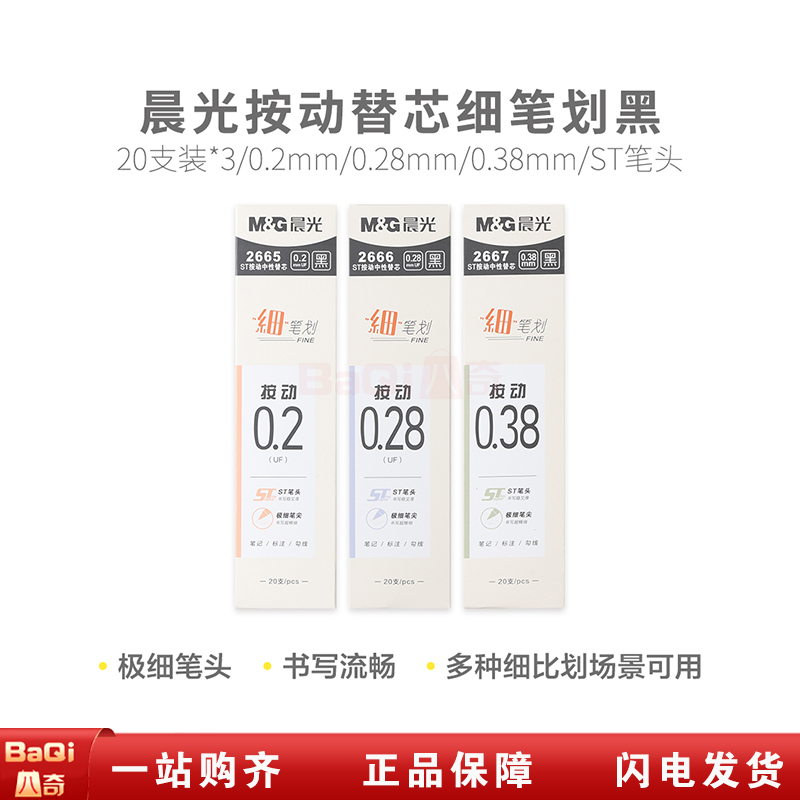 商品名称:晨光2667 黑色 0.38mm ST笔头按动替芯(20支/盒)