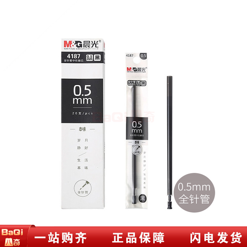 晨光4187 本味系列精品替芯中性全针管替芯 0.5mm 黑色(20支/盒)