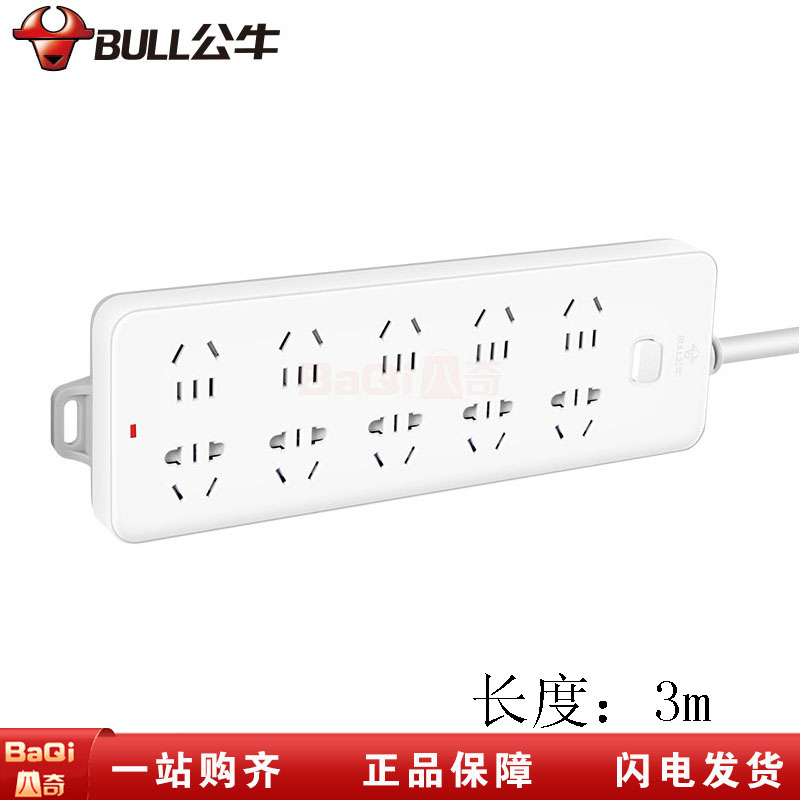 商品名称:公牛 新国标GN-218 3m有线3米10孔插座排插接线板过载保护拖线板