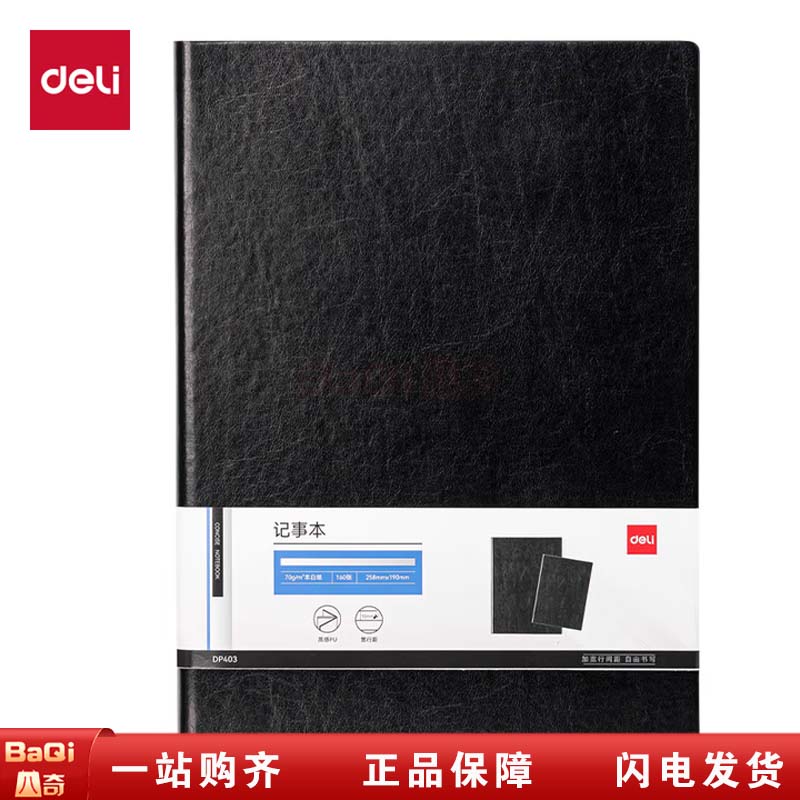商品名称:得力 DP403 16K办公皮面本-160张 黑色