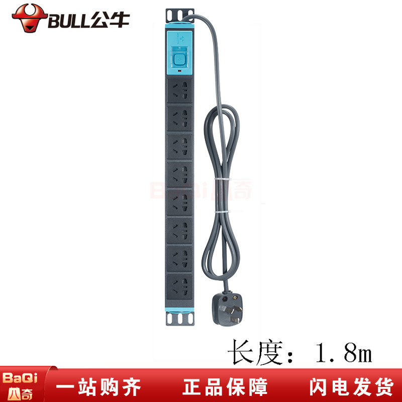 商品名称:公牛 新国标GNE-1080 PDU机柜用电源插座8插位机箱使用带电源线1.8米带开关10A铝排插接线板