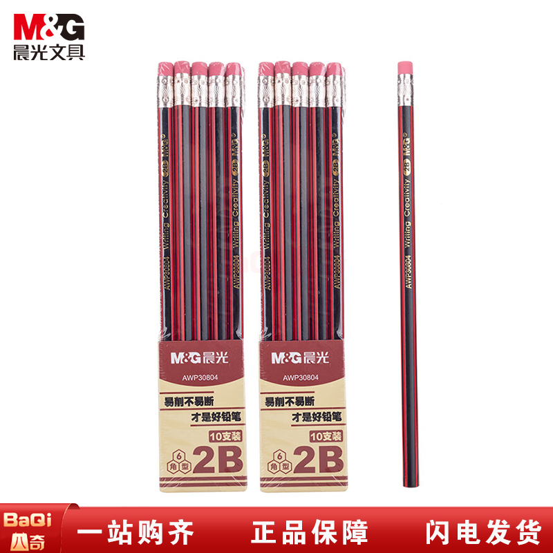 商品名称:晨光AWP30804 小学生用铅笔红黑木杆铅笔1-3年级学生写作业木质2B铅笔 (10支/盒)