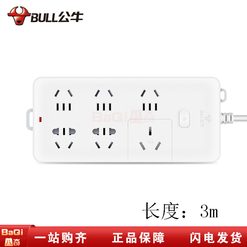 商品名称:公牛 GN-B15D 电源插座 新国标插座3米电源线16A大功率排插空调热水器带开关接线板拖线板