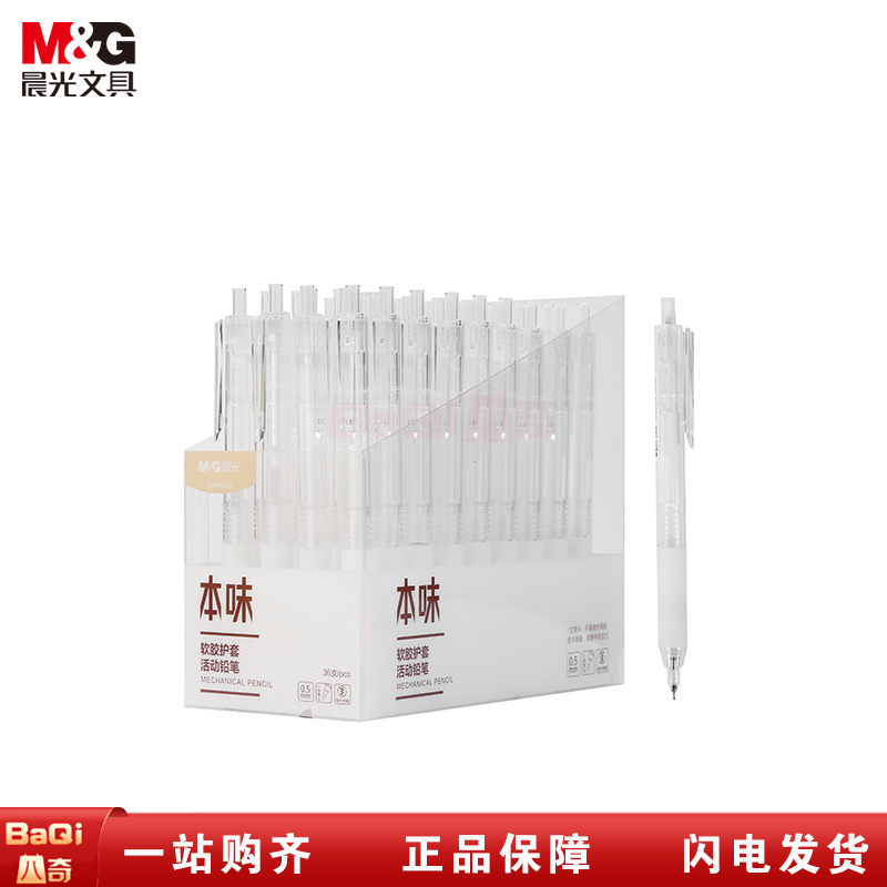 商品名称:晨光AMPH5605 活动铅笔学生考试用简约透明笔杆软握胶护套活动铅笔 0.5mm (36支/盒)