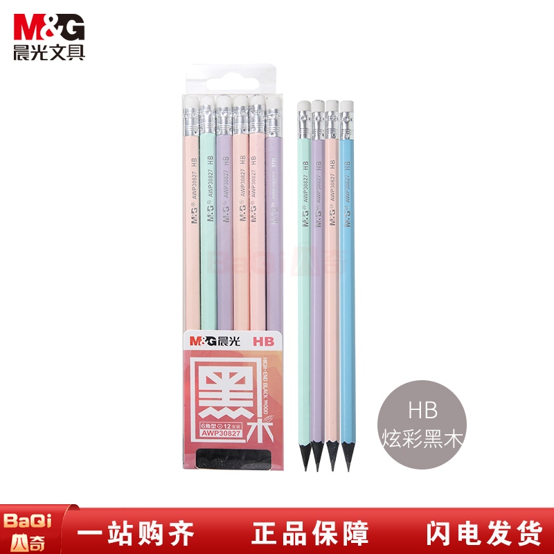 商品名称:晨光AWP30827 HB六角杆黑木木杆铅笔 纯色削尖 荧光色小学生铅笔 马卡龙色 (12支/盒)