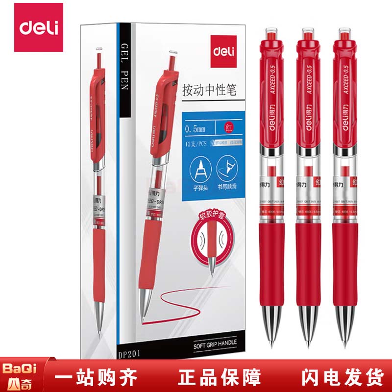 商品名称:得力 DP201 按动中性笔0.5mm子弹头 红色 12支/盒