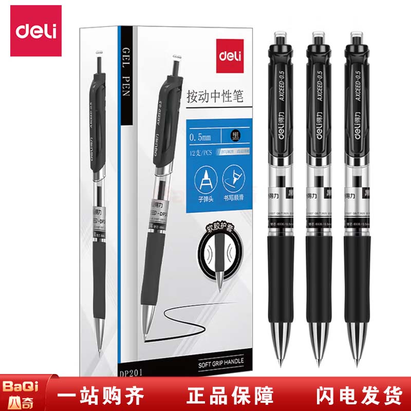 商品名称:得力 DP201 按动中性笔0.5mm子弹头 黑色 12支/盒