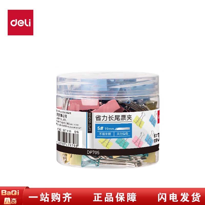 商品名称:得力 DP705省力长尾票夹5#夹宽19MM 混色 40个/筒