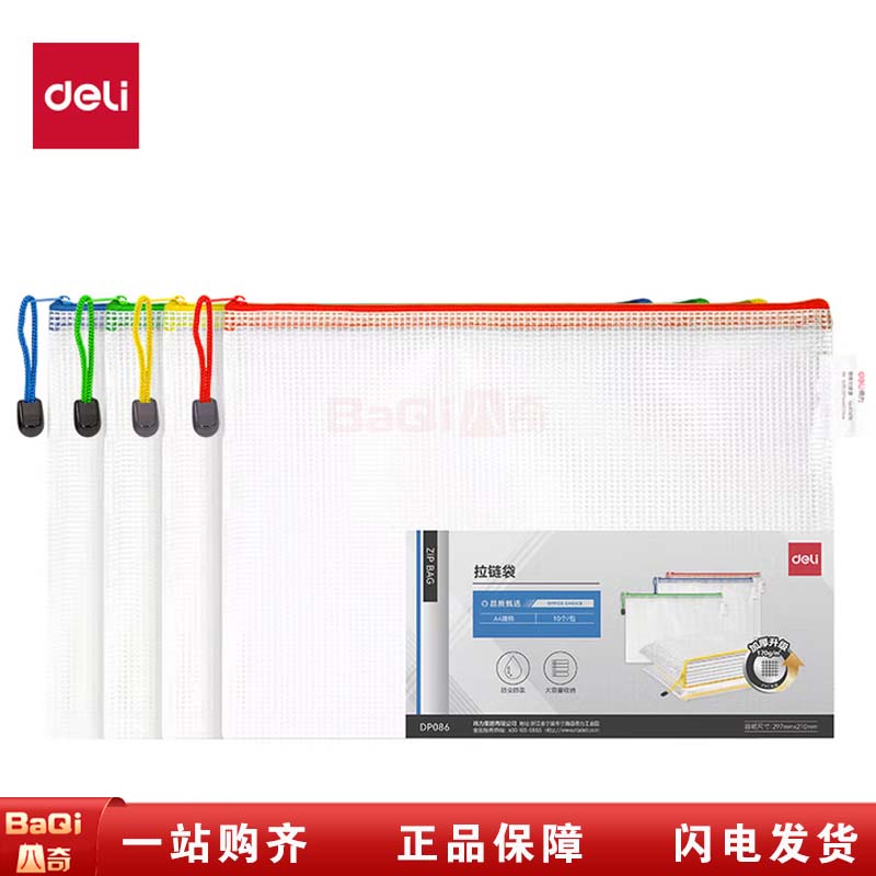 商品名称:得力 DP086 A4标准型PVC网格拉链袋 混 10个/包