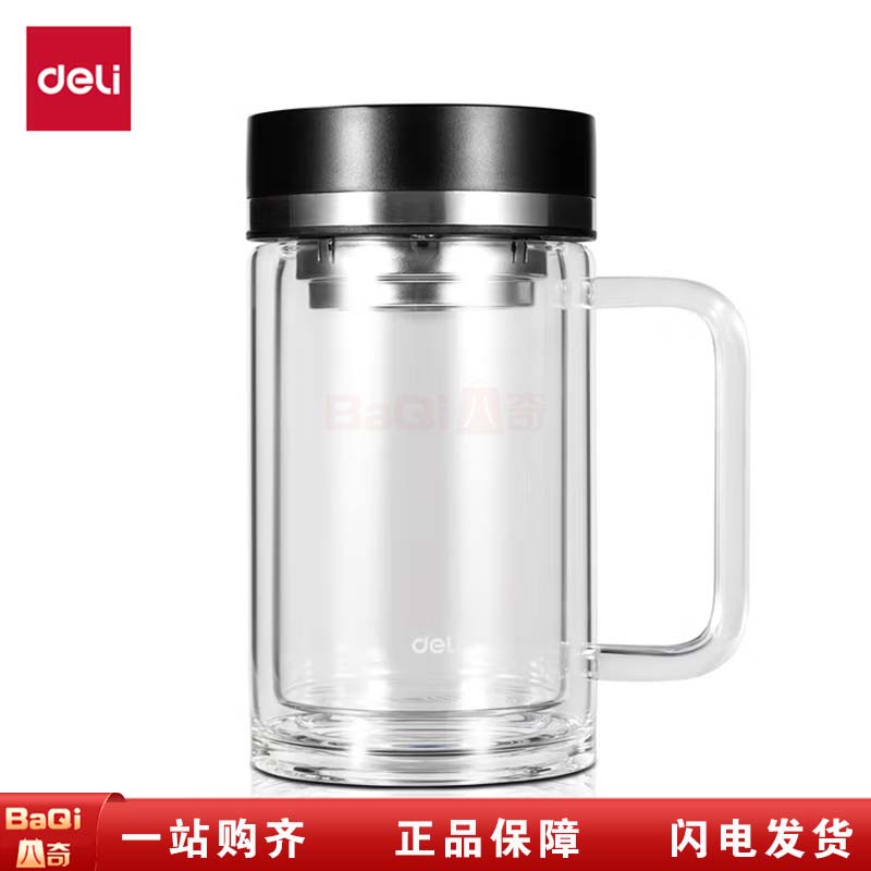 商品名称:得力 DP758 430mL双层玻璃杯把手杯 黑