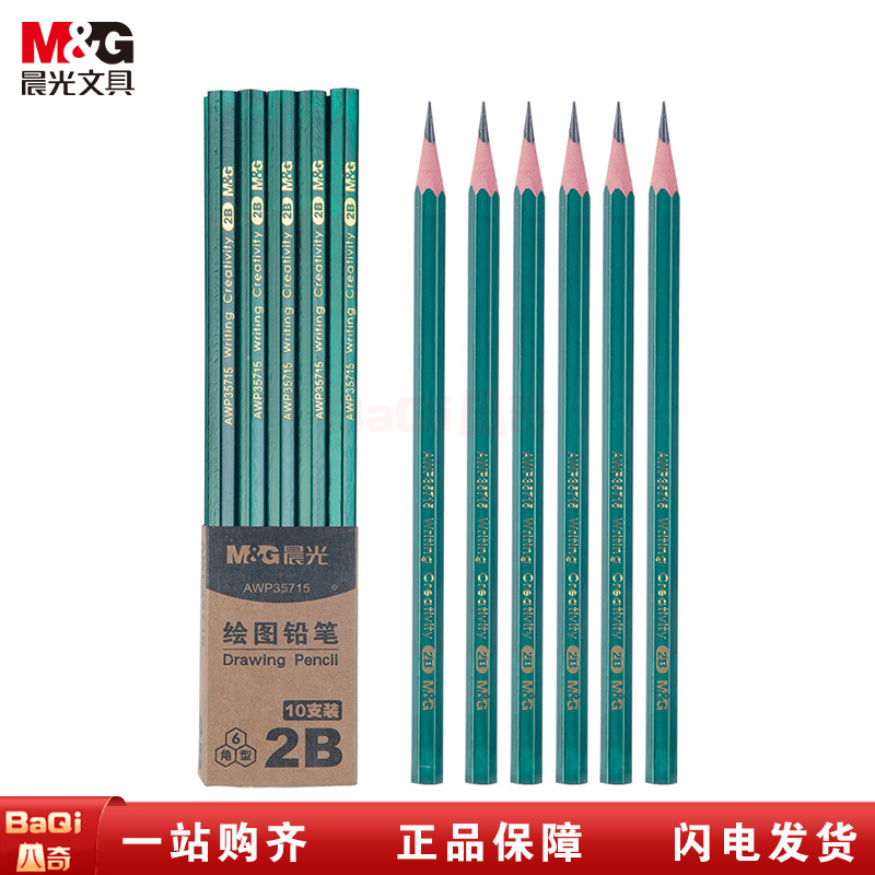 商品名称:晨光AWP35715 六角木杆2B铅笔学生经典绿杆考试涂卡铅笔美术素描绘图木质铅笔 (10支/盒)