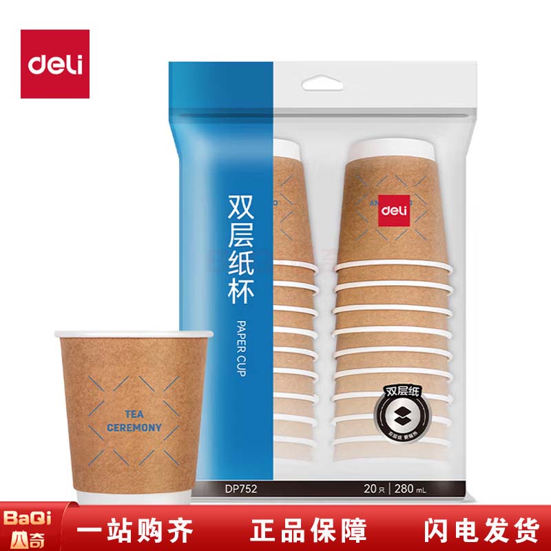 商品名称:得力 DP752 280mL双层纸杯 棕色 20只/包
