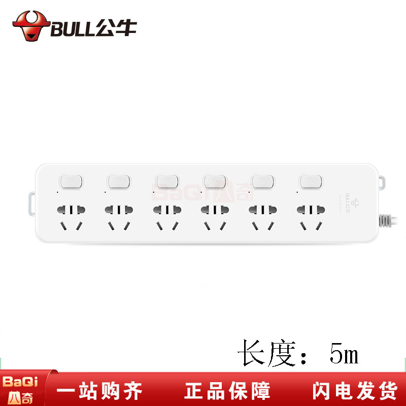商品名称:公牛 新国标GN-313 5m有线5米6孔插座排插接线板 独立开关 过载保护拖线板