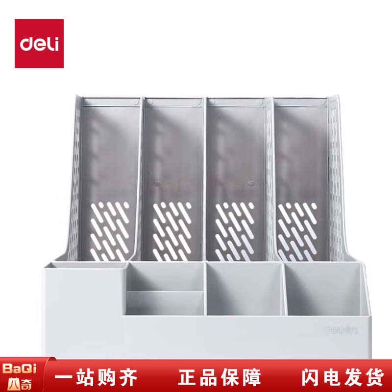 商品名称:得力 DP532四联文件框带笔筒 灰色