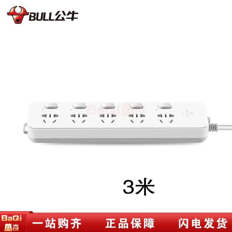 商品名称:公牛 GN-312 3m(新国标)全长3米5孔位分控开关插座/接线板/插线板/排插